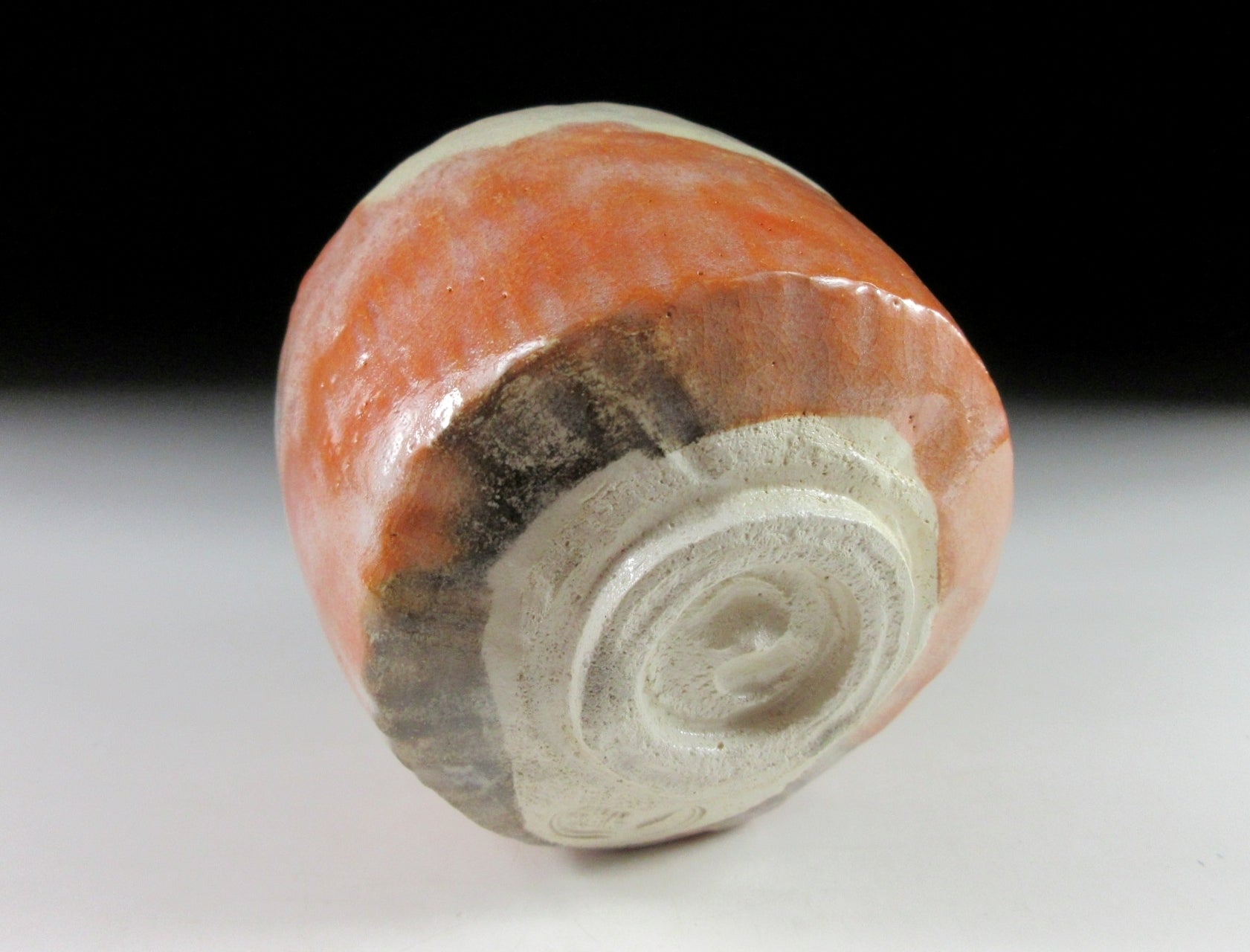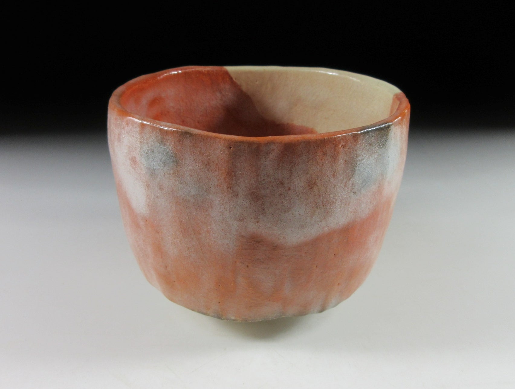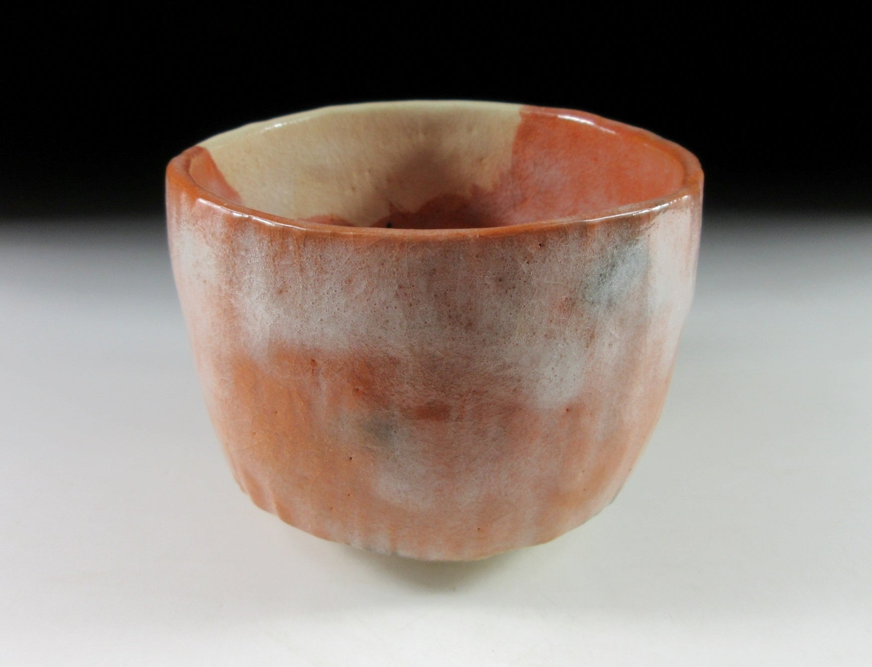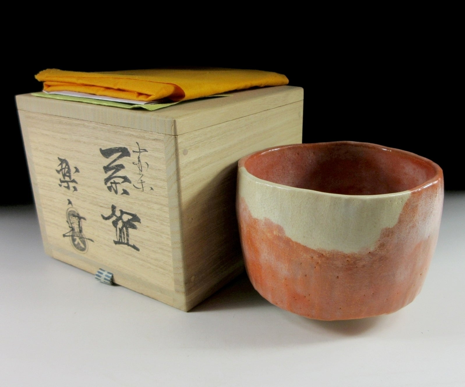 This listing is for a splendid Raku-ware ‘Kaga-Koetsu’ chawan made around 20 years ago by noted potter, Yoshimura Rakunyu III. It is hand-turned and a replica of a chawan named ‘Kaga-Koetsu’ made by master craftsman, Hon’ami Koetsu (1558-1637). It closely resembles Koetsu’s original in form and sculpting, and it has a low foot. The red slip is somewhat brighter than the original, however it has the same characteristic patches of white. This piece is perfect March through May and sits beautifully in the hand. The stamp of the potter can be found on the bottom, and it comes with its original signed wooden storage box. It also comes with a stamped turmeric coloured wrapping cloth to be used when storing the bowl, as well as a two Japanese language profile papers. *PLEASE NOTE THAT THE CHASHAKU TEA SCOOP IS NOT INCLUDED.
