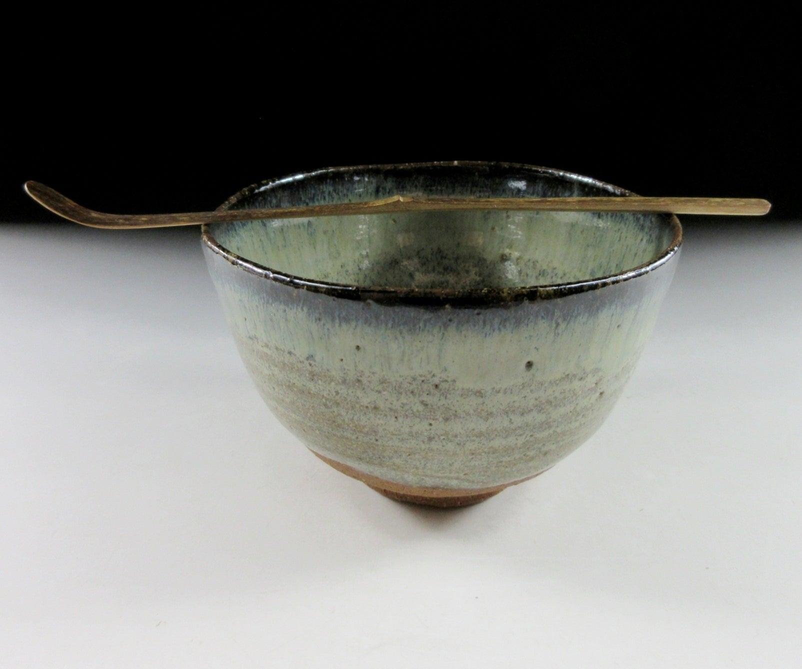 This listing is for a Kyo-ware chawan made around 20 years ago by noted potter, Yoshizo Asami IV. It is wheel-thrown and features Karatsu-style glaze over a high-fired stoneware base. This piece has a nice deep shape for whisking, and fits comfortably in the hand. The signature of the potter can be found on the bottom, sorry no box for this one. *PLEASE NOTE THAT THE BAMBOO TEA SCOOP IS NOT INCLUDED.