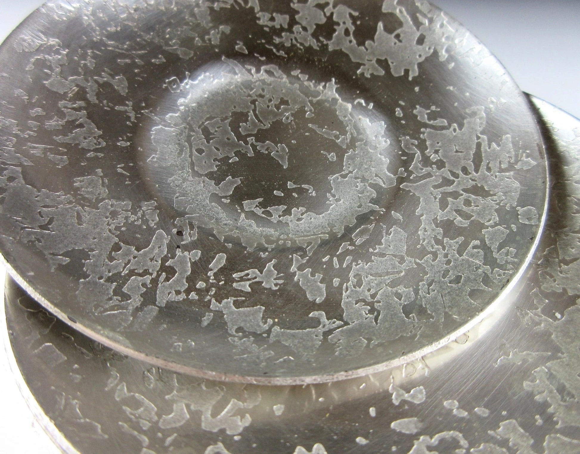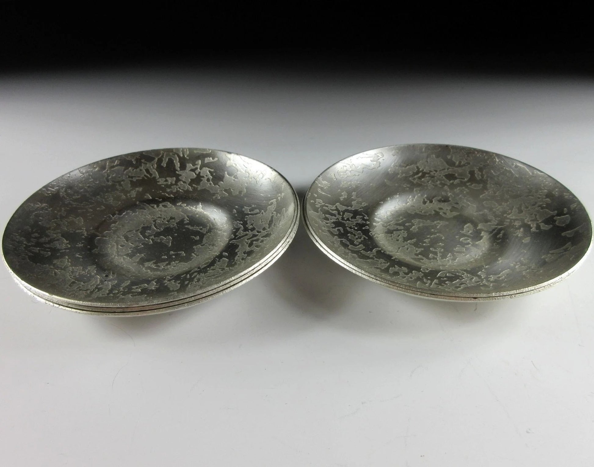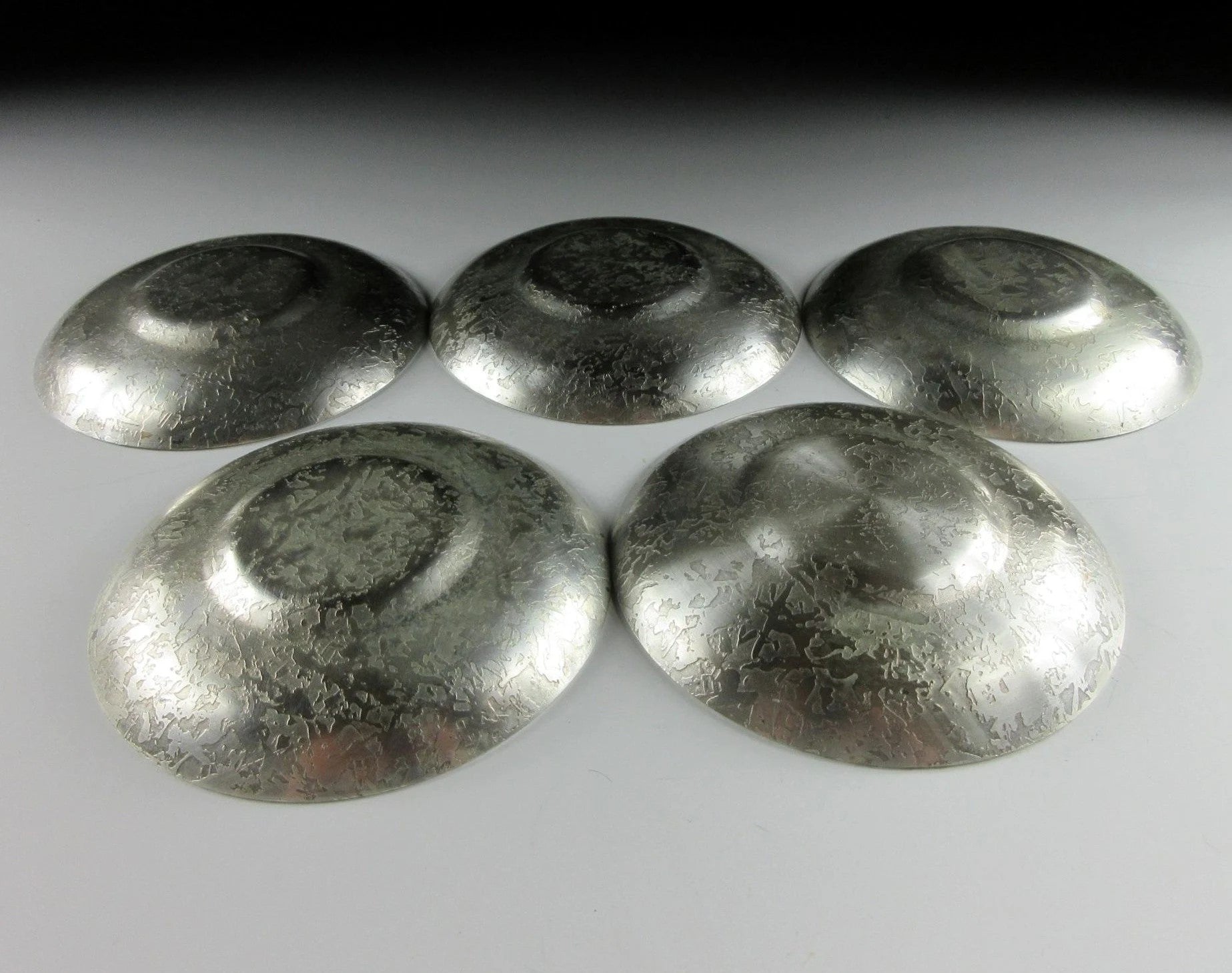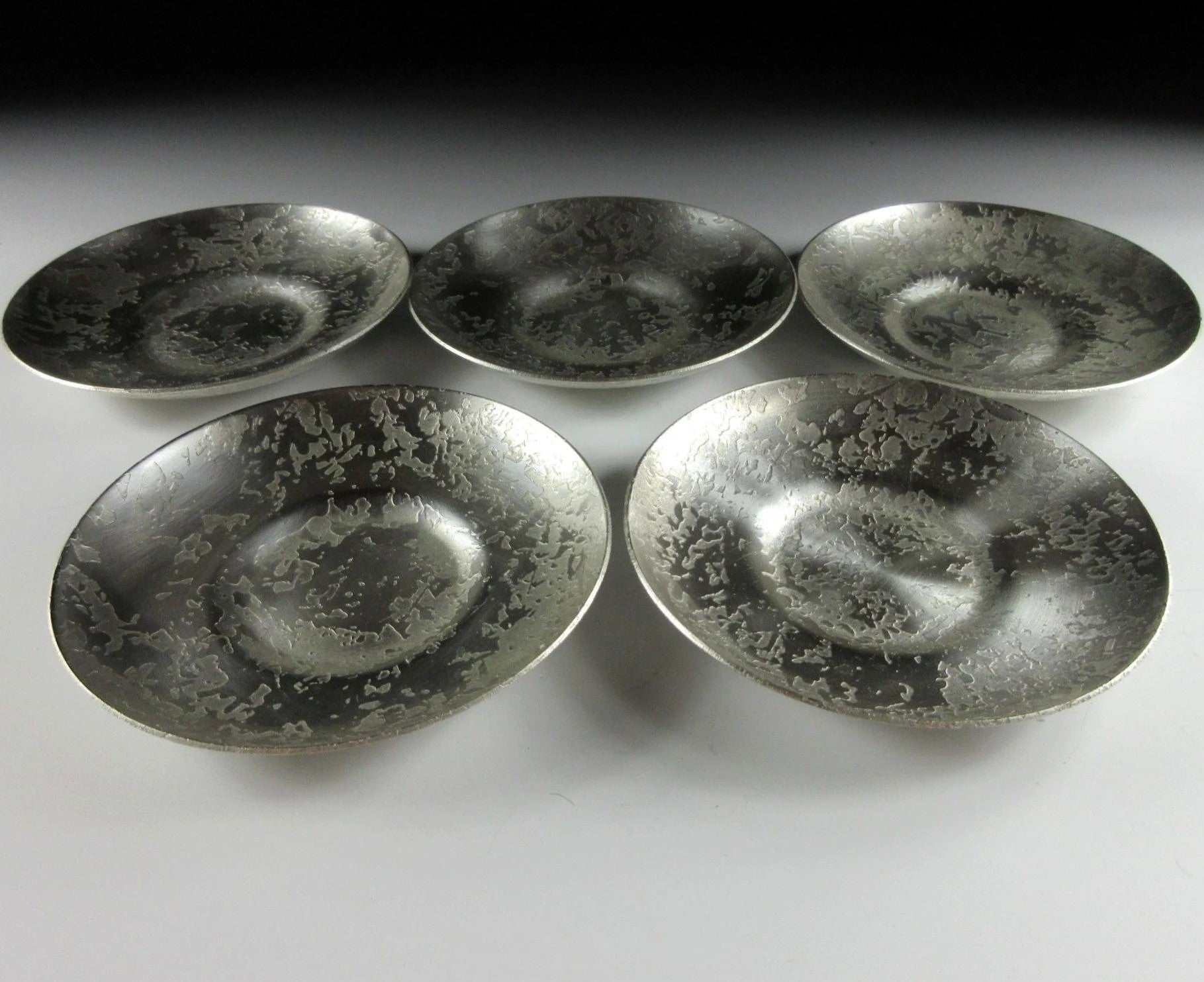 This listing is for a set of five chataku made around 20-30 years ago by Takaoka artisan Zuisei Kahaku. Each piece is made of copper alloy and features beautiful ‘kori wari’ ice break patterns on the surface created using a similar process to etching. Chataku such as these are perfect for special occasions but also durable enough for daily use. This set comes with its original signed wooden storage box.